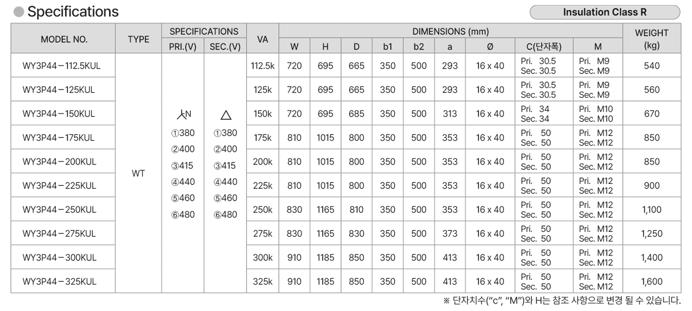 *제품 이미지는 WY3P44-112.5KUL ~ 150KUL 모델까지 해당됨.
