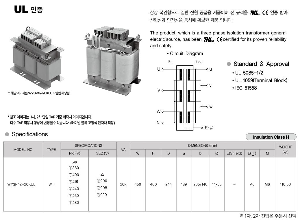 | TYPE | 삼상, UL인증 트랜스포머 |