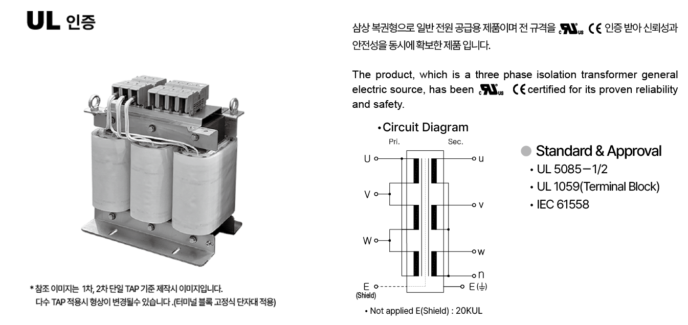 | TYPE | 삼상, UL인증 트랜스포머 |