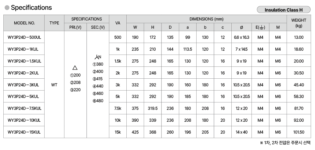 | Model No | WY3P24D-500UL WY3P24D-1KUL WY3P24D-1.5KUL WY3P24D-2KUL WY3P24D-3KUL WY3P24D-5KUL WY3P24D-7.5KUL WY3P24D-10KUL WY3P24D-15KUL |