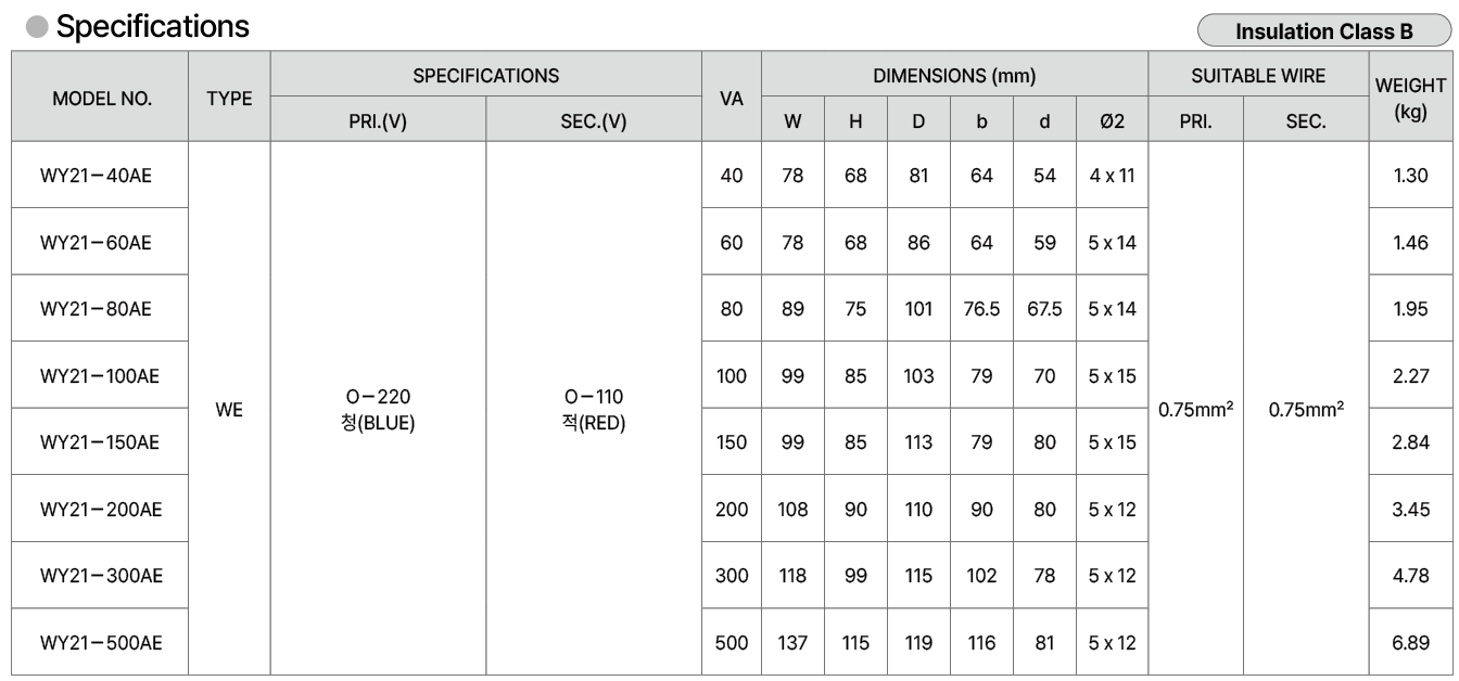 | Model No | WY21-40AE WY21-60AE WY21-80AE WY21-100AE WY21-150AE WY21-200AE WY21-300AE WY21-500AE |