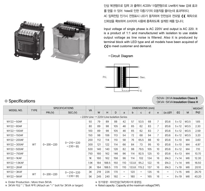 | Model No | WY22-50AF WY22-80AF WY22-100AF WY22-150AF WY22-200AF WY22-300AF WY22-500AF WY22-750AF WY22-1KAF WY22-1.5KAF WY22-2KAF WY22-3KAF WY22-5KAF |
