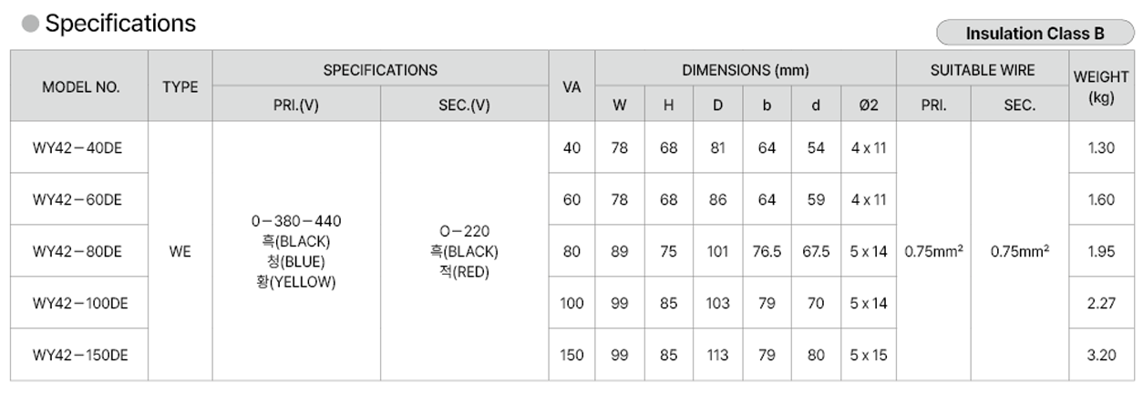 | Model No | WY42-40DE WY42-60DE WY42-80DE WY42-100DE WY42-150DE |