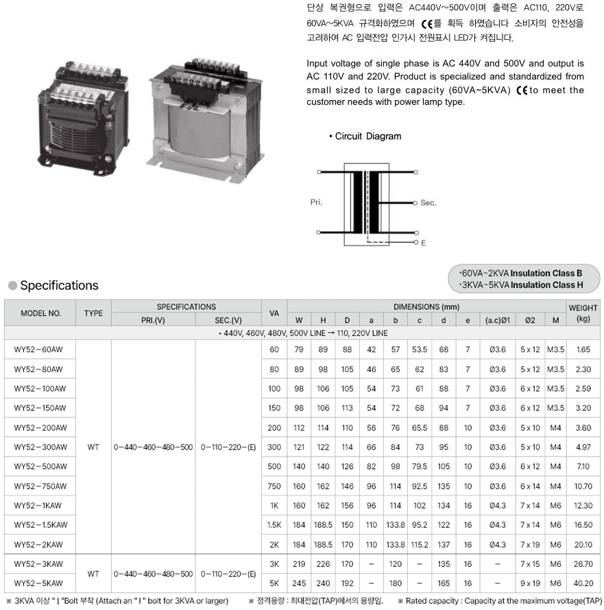 | Model No | WY52-60AW WY52-80AW WY52-100AW WY52-150AW WY52-200AW WY52-300AW WY52-500AW WY52-750AW WY52-1KAW WY52-1.5KAW WY52-2KAW WY52-3KAW WY52-5KAW |