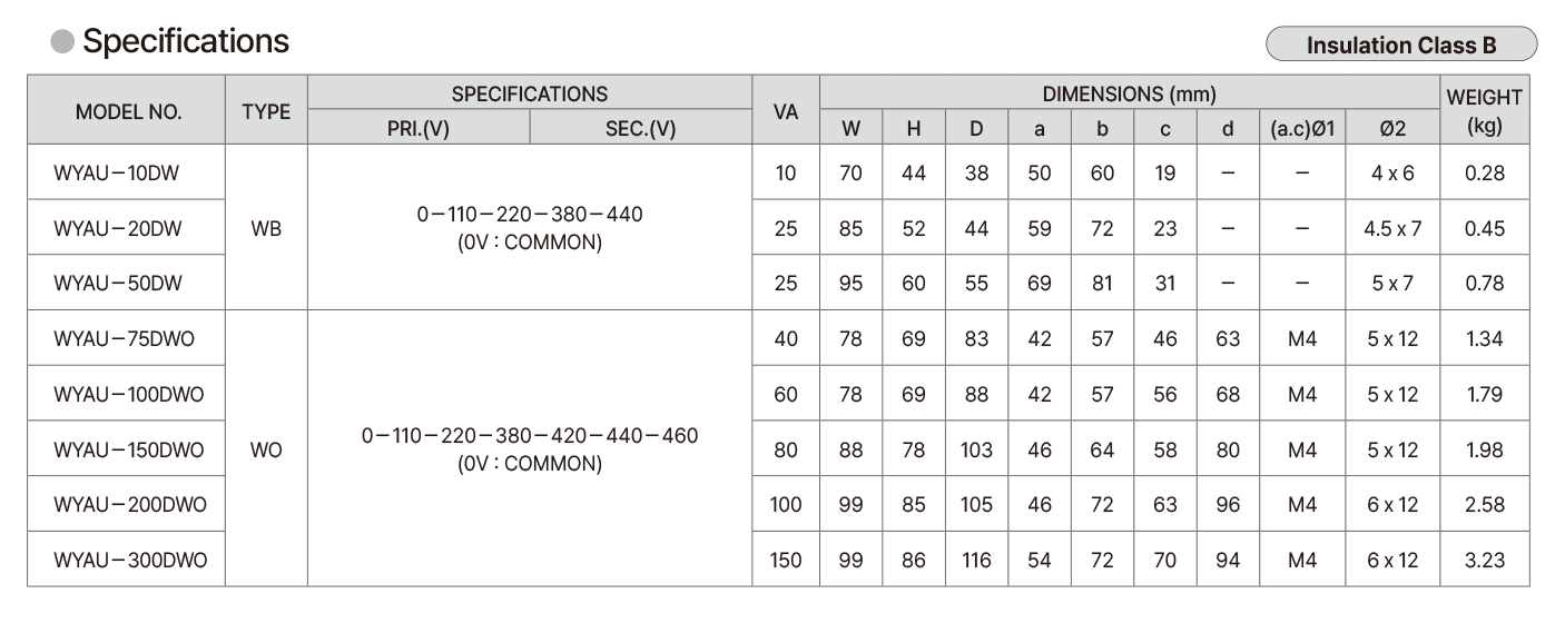 | Model No | WYAU-10DW WYAU-20DW WYAU-50DW WYAU-75DWO WYAU-100DWO WYAU-150DWO WYAU-200DWO WYAU-300DWO |