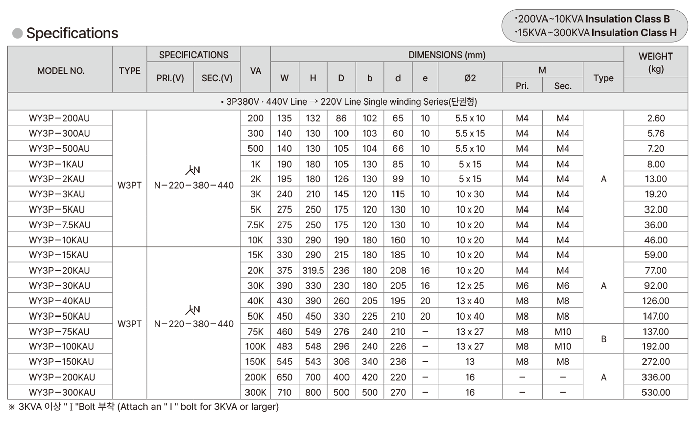 | Model No | WY3P-200AU WY3P-300AU WY3P-500AU WY3P-1KAU WY3P-2KAU WY3P-3KAU WY3P-5KAU WY3P-7.5KAU WY3P-10KAU WY3P-15KAU WY3P-20KAU WY3P-30KAU |