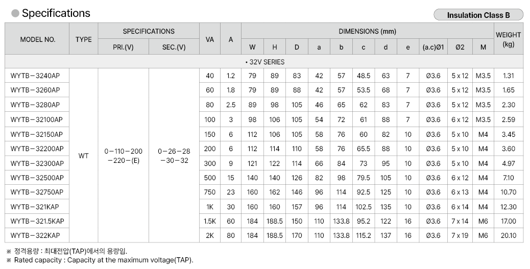 | Model No | WYTB-3240AP WYTB-3260AP WYTB-3280AP WYTB-32100AP WYTB-32150AP WYTB-32200AP WYTB-32300AP WYTB-32500AP WYTB-32750AP WYTB-321KAP WYTB-321.5KAP WYTB-322KAP |
