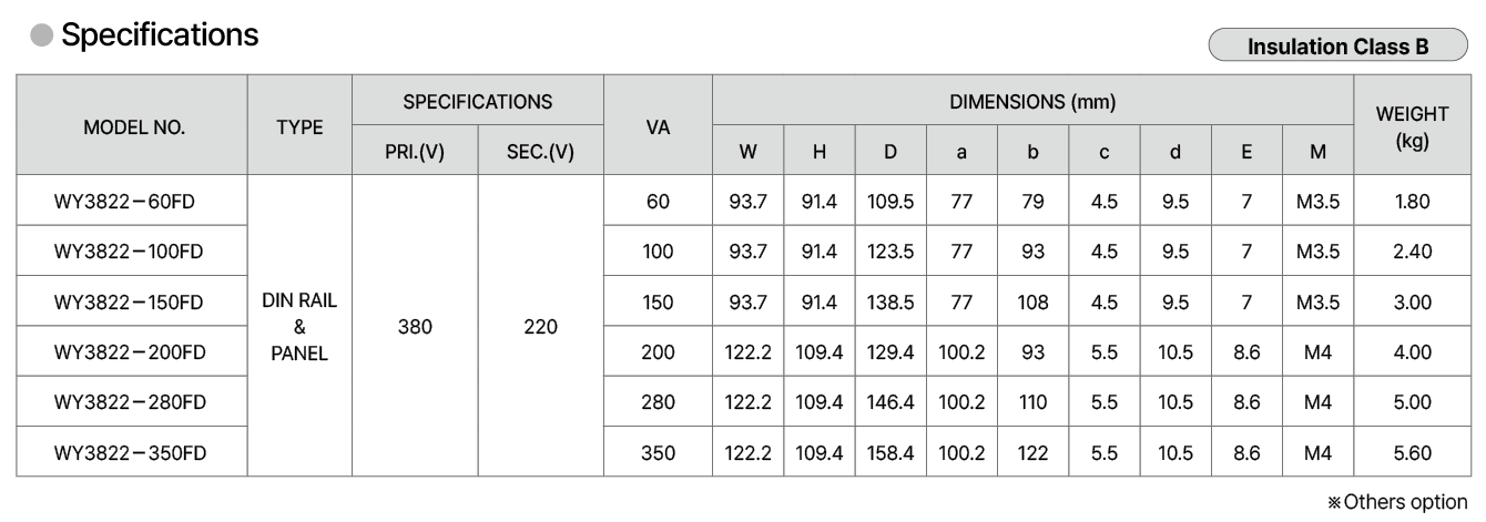 | Model No | WY3822-60FD WY3822-100FD WY3822-150FD WY3822-200FD WY3822-280FD WY3822-350FD |