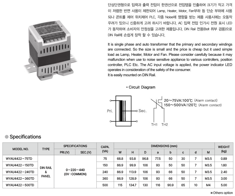 | Model No | WYAU4422-75TD WYAU4422-150TD WYAU4422-240TD WYAU4422-360TD WYAU4422-500TD |