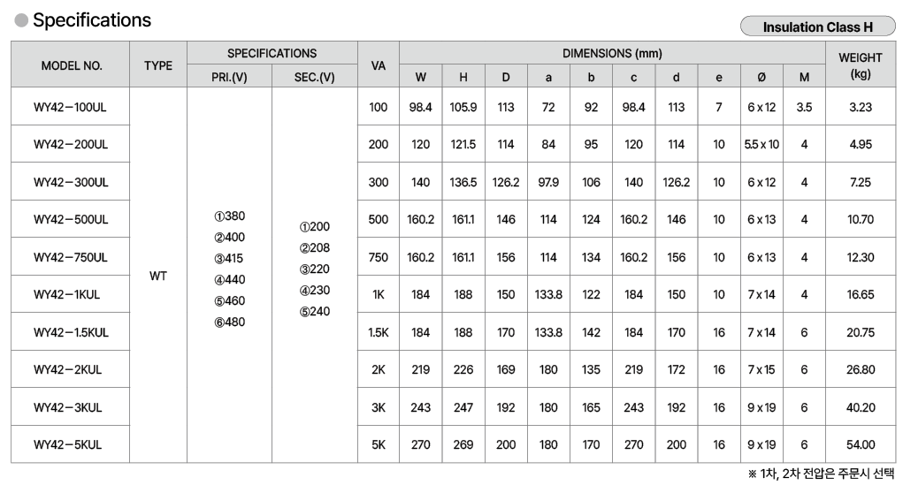 | Model No | WY42-100UL WY42-200UL WY42-300UL WY42-500UL WY42-750UL WY42-1KUL WY42-1.5KUL WY42-2KUL WY42-3KUL WY42-5KUL |