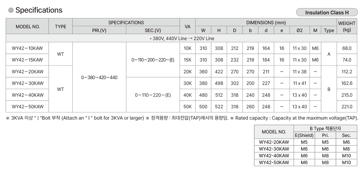 단상 복권형으로 AC 380V, 440V 이며 출력은 AC 110V, 220V 로
