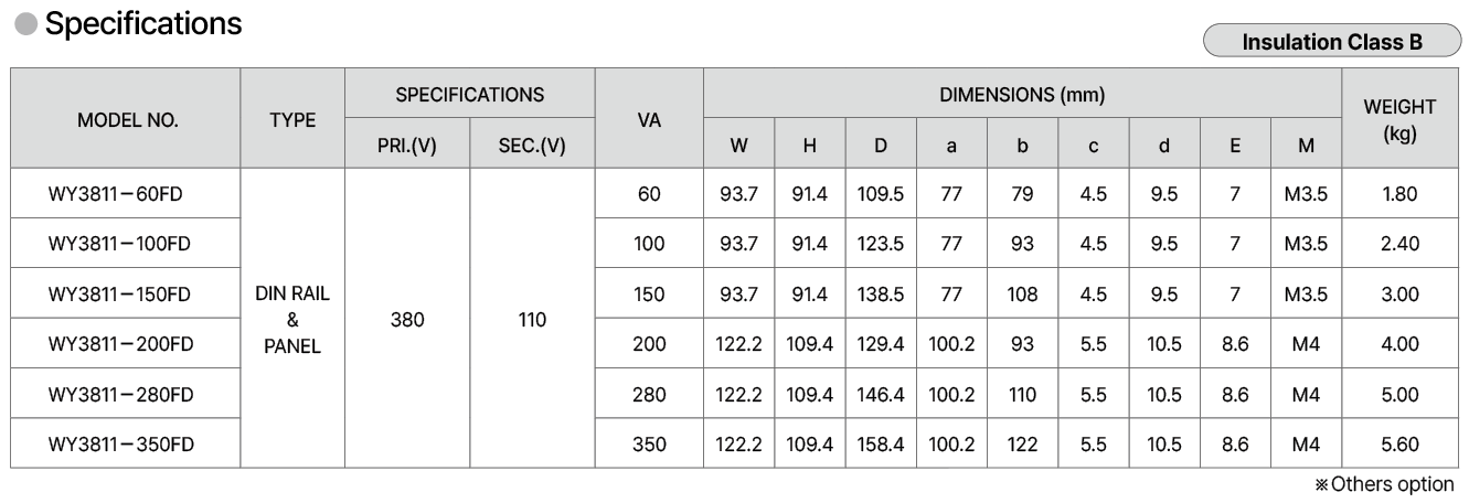 | Model No | WY3811-60FD WY3811-100FD WY3811-150FD WY3811-200FD WY3811-280FD WY3811-350FD |