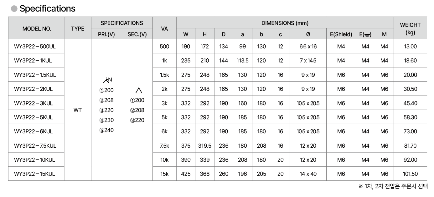 | TYPE | 삼상, UL인증 트랜스포머 |