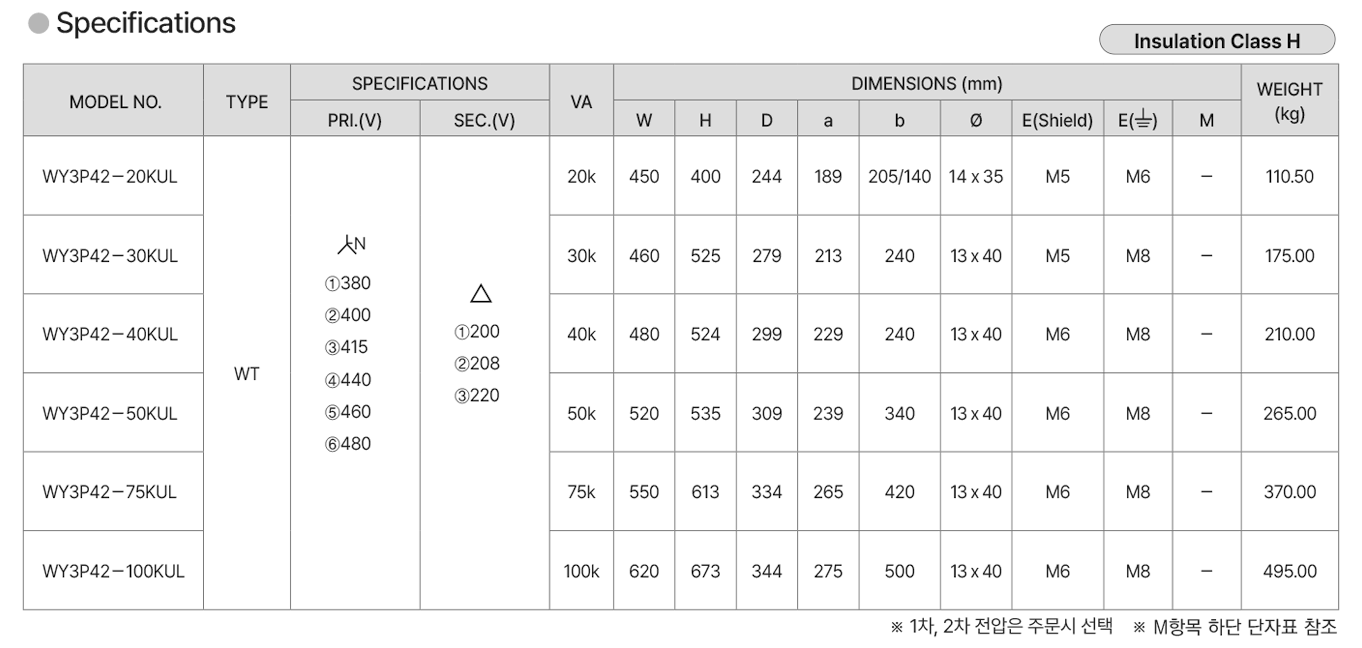 | TYPE | 삼상, UL인증 트랜스포머 |