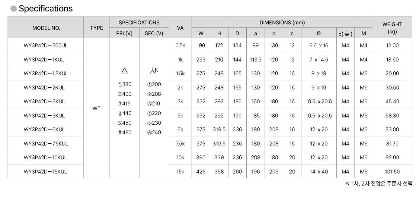 | TYPE | 삼상, UL인증 트랜스포머 |