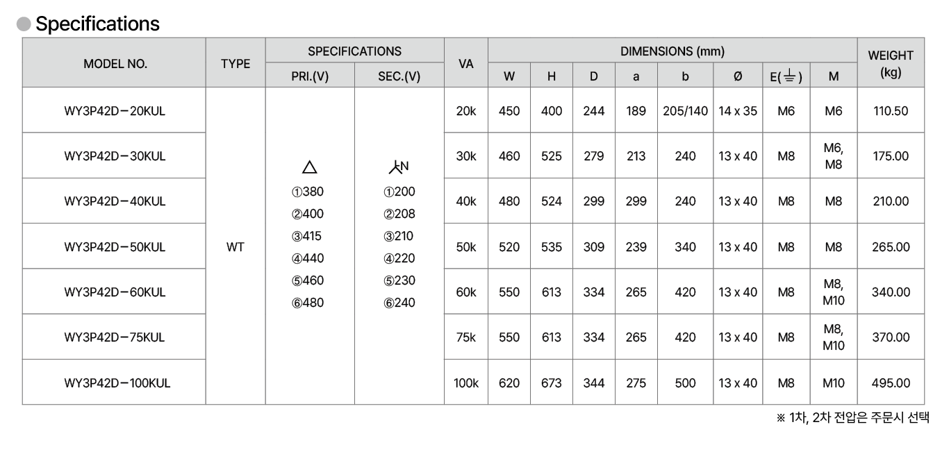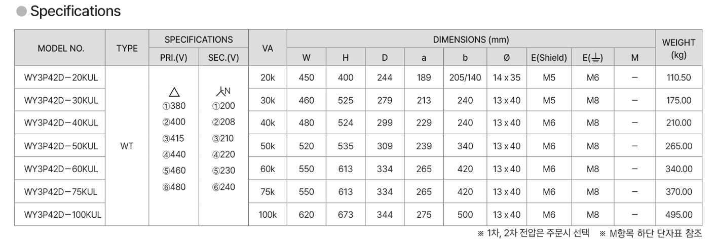| TYPE | 삼상, UL인증 트랜스포머 |