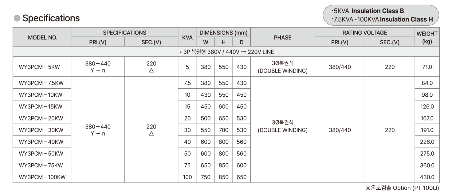 | Model No | WY3PCM-5KW WY3PCM-7.5KW WY3PCM-10KW WY3PCM-15KW WY3PCM-20KW WY3PCM-30KW WY3PCM-40KW WY3PCM-50KW WY3PCM-75KW WY3PCM-100KW |