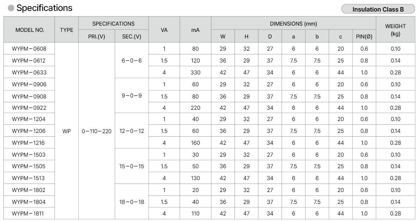 Printed-Circuit용(P.C.B)으로 제작 되었습니다. 1,2차간 권선분리형으로