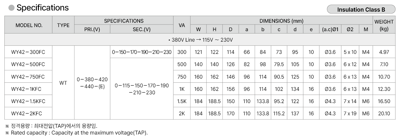 | Model No | WY42-300FC WY42-500FC WY42-750FC WY42-1KFC WY42-1.5KFC WY42-2KFC |