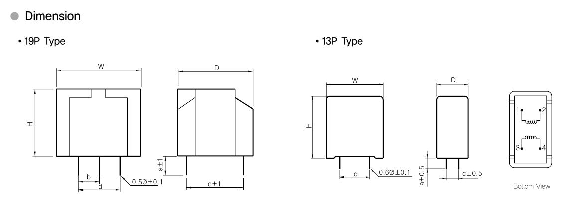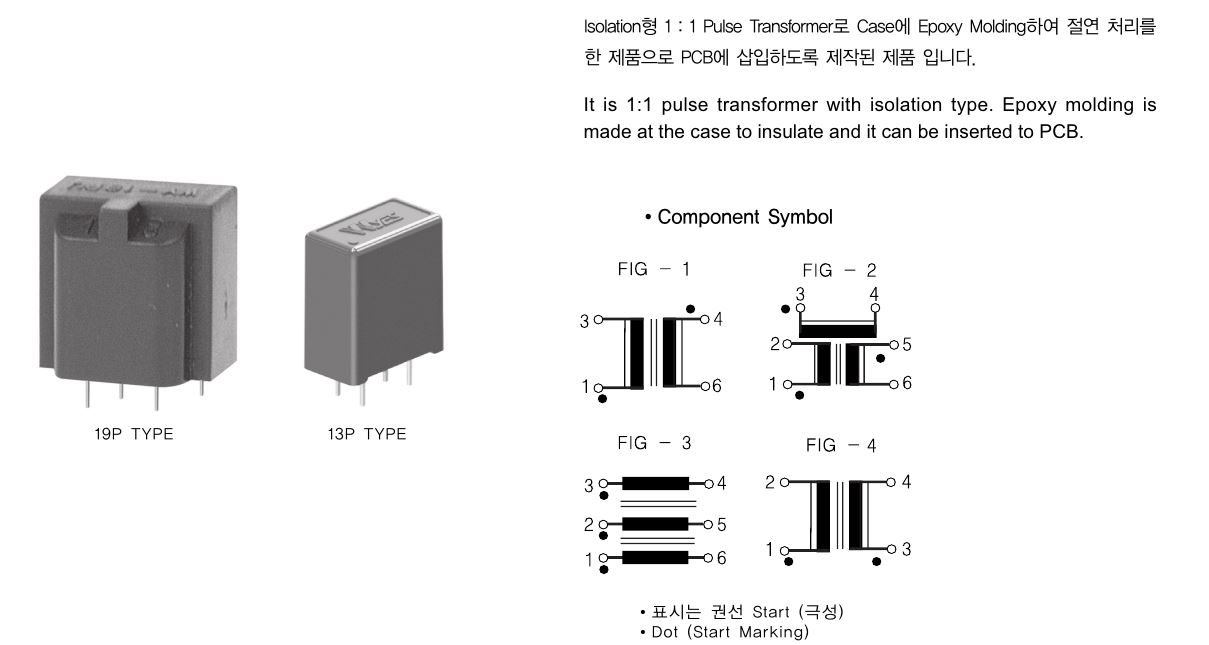 Isolation형 1 : 1 Pulse Transformer로 Case에 Epoxy Molding하여