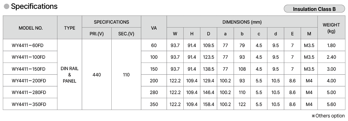 | Model No | WY4411-60FD WY4411-100FD WY4411-150FD WY4411-200FD WY4411-280FD WY4411-350FD |