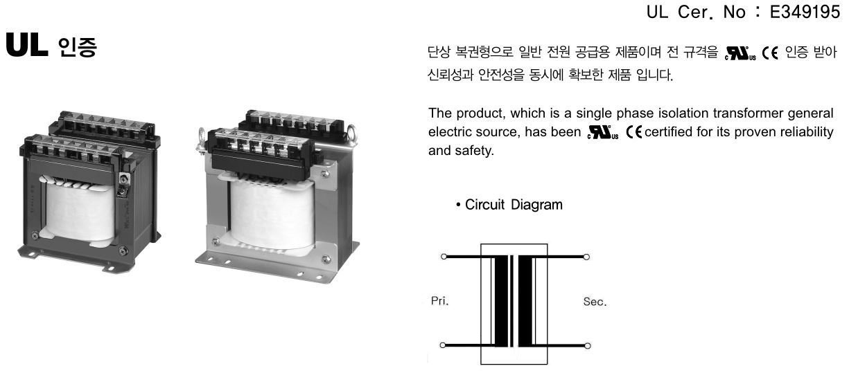 단상 복권형으로 일반 전원 공급용 제품이며 전 규격을 UL, CE 인증받아 신뢰성과 안전성을 동시에 확보한 제품 입니다.