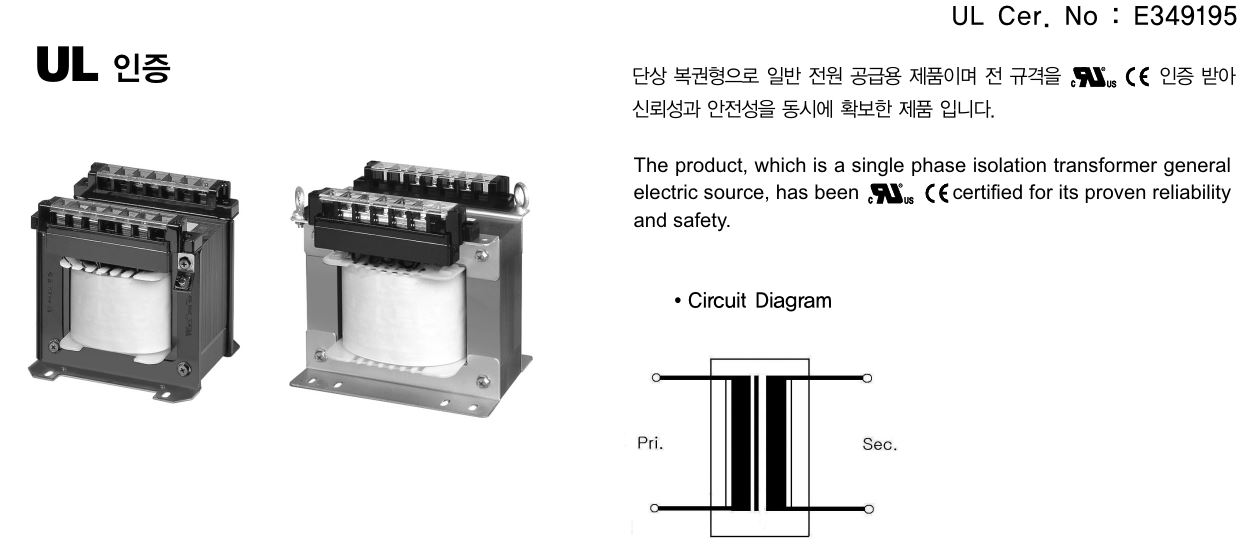 단상 복권형으로 일반 전원 공급용 제품이며 전 규격을 UL, CE 인증받아 신뢰성과 안전성을 동시에 확보한 제품 입니다.